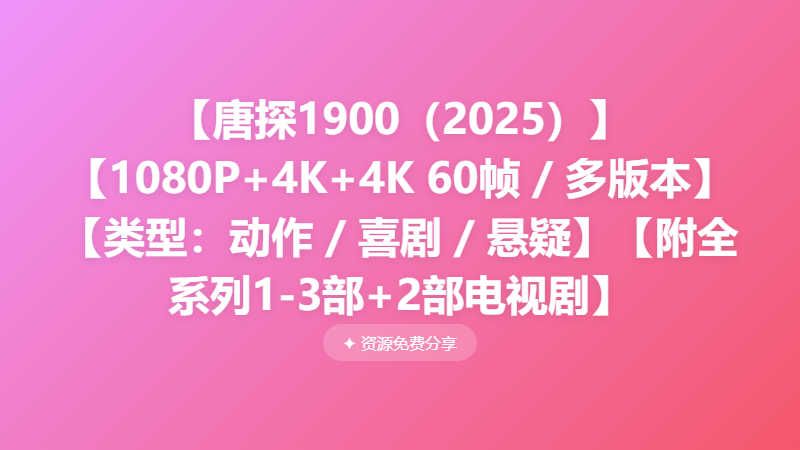 【唐探1900(2025)】【1080P+4K+4K 60帧 / 多版本】【类型:动作 / 喜剧 / 悬疑】【附全系列1-3部+2部电视剧】