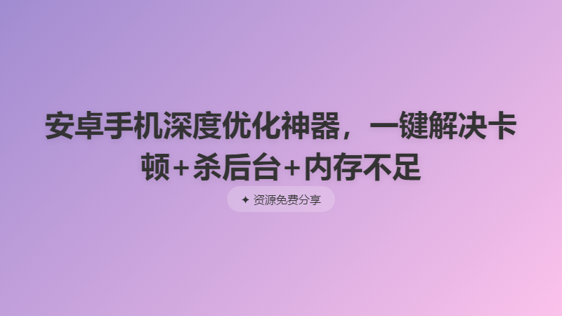 安卓手机深度优化神器,一键解决卡顿+杀后台+内存不足