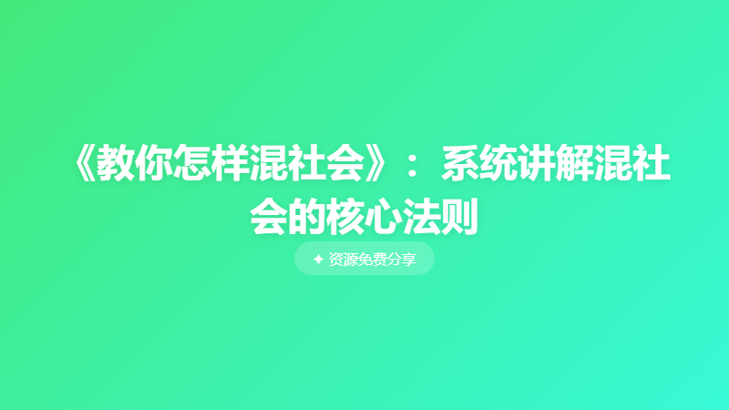 《教你怎样混社会》:系统讲解混社会的核心法则 ├── 教你怎样混社会 (天涯).epub └── 教你怎样混社会 (天涯).pdf