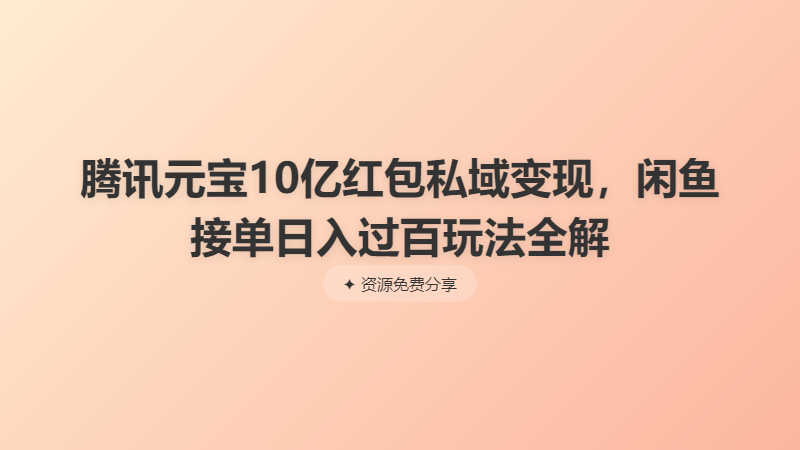 腾讯元宝10亿红包私域变现,闲鱼接单日入过百玩法全解 ├── 收益 │ └── 闲鱼.png ├── 1.玩法介绍和准备 (1).mp4 └── 2.玩法实操和总结 (1).mp4