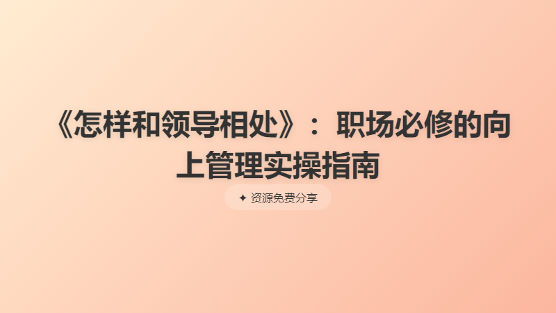《怎样和领导相处》:职场必修的向上管理实操指南 └── 《怎样和领导相处》:职场必修的向上管理实操指南.pdf
