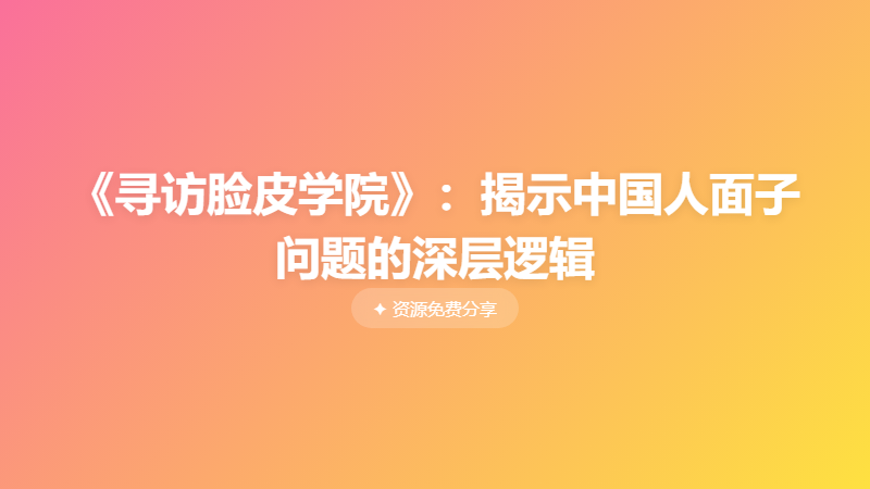 《寻访脸皮学院》:揭示中国人面子问题的深层逻辑