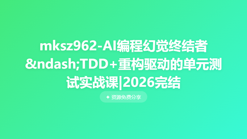 mksz962-AI编程幻觉终结者–TDD+重构驱动的单元测试实战课|2026完结