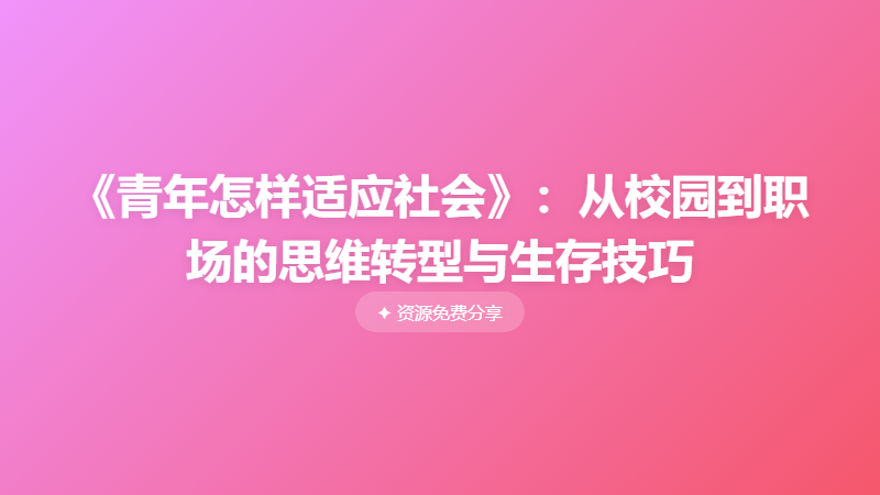 《青年怎样适应社会》:从校园到职场的思维转型与生存技巧 └── 《青年怎样适应社会》:从校园到职场的思维转型与生存技巧.pdf