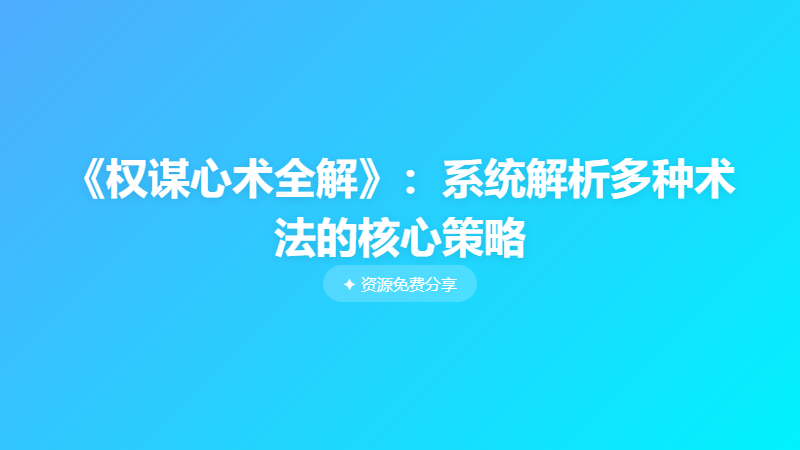 《权谋心术全解》:系统解析多种术法的核心策略 └── 《权谋心术全解》:系统解析多种术法的核心策略.pdf