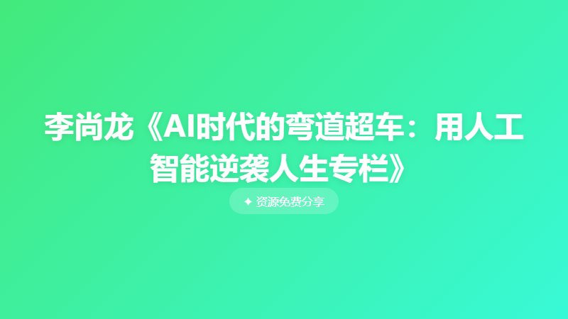 李尚龙《AI时代的弯道超车:用人工智能逆袭人生专栏》
