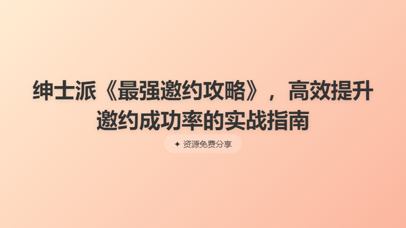 绅士派《最强邀约攻略》,高效提升邀约成功率的实战指南 ├── 《最强邀约攻略》第一集——能否邀约的核心原因.mp4 ├── 《最强邀约攻略》第三集——无联系感怎么邀约.mp4 ├── 《最强邀约攻略》第四集——正确的邀约流程.mp4 ├── 《最强邀约攻略》第五集——如何化解邀约常见问题.mp4 ├── 《最强邀约攻略》第六集——邀约常见问题案例(上).mp4 ├── 《最强邀约攻略》第七集——邀约常见问题案例(下).mp4 ├── 《最强邀约攻略》第八集——邀约案例.mp4 ├── 《最强邀约攻略》第九集——没搞定怎么建立后续.mp4 ├── 《最强邀约攻略》第十集——快速邀约之后见面怎么做.mp4 └── 《最强邀约攻略》第十一集——快速邀约中你可能会遇到的“坑”.mp4