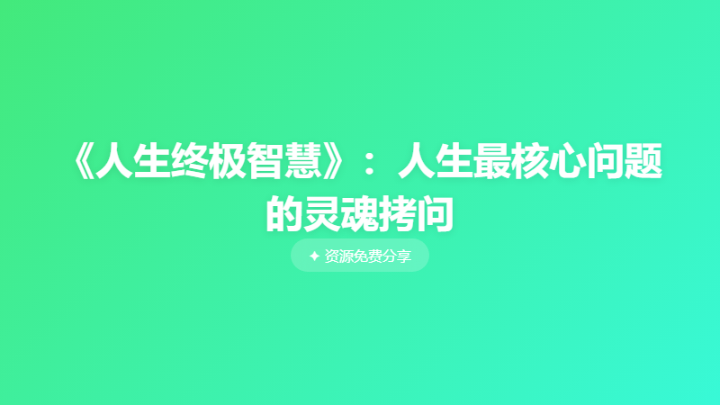 《人生终极智慧》:人生最核心问题的灵魂拷问 └── 《人生终极智慧》:人生最核心问题的灵魂拷问.pdf