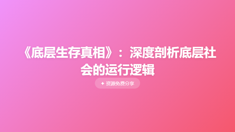 《底层生存真相》:深度剖析底层社会的运行逻辑