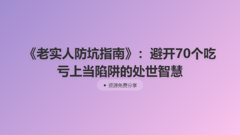 《老实人防坑指南》:避开70个吃亏上当陷阱的处世智慧 └── 《老实人防坑指南》:避开70个吃亏上当陷阱的处世智慧.pdf