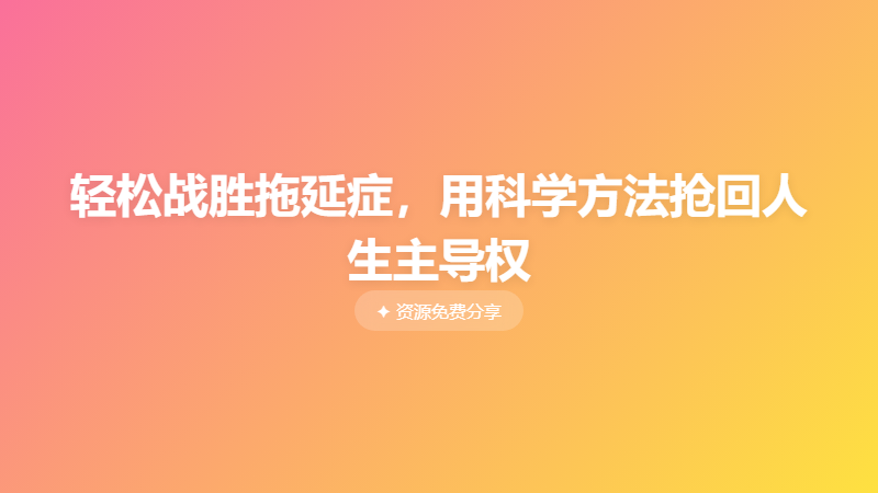 轻松战胜拖延症,用科学方法抢回人生主导权 ├── 第1课-即学即用的“战拖”秘籍.mp4 ├── 第2课-认识拖延症.mp4 ├── 第3课-控制注意力.mp4 ├── 第4课-改变环境.mp4 ├── 第5课-拖延症的根源与现象.mp4 ├── 第6课-巧用心理学.mp4 ├── 第7课-学会制定计划.mp4 ├── 第8课-实时行动.mp4 ├── 第9课-总结与复盘.mp4 ├── 第10课-长中期战拖.mp4 └── 先导课-课程及老师介绍.mp4