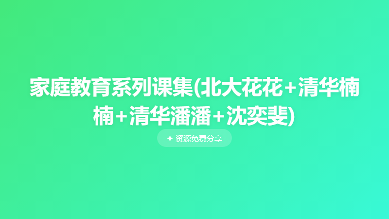 家庭教育系列课集(北大花花+清华楠楠+清华潘潘+沈奕斐) ├── 北大花花家庭教育课程合集 │ ├── 北大花花-父母养育宝典5大养育难题(30节完整版) │ │ ├── 01、家长课-动力_动力-学习力是未来世界核心竞争力.mp4 │ │ ├── 02、家长课-动力_动力-如何拥有学习的自主感.mp4 │ │ ├── 03、家长课-动力_动力-如何理解学习的意义.mp4 │ │ ├── 04、家长课-动力_动力-为什么学习需要安全感.mp4 │ │ ├── 05、家长课-动力_动力-如何获得学习的胜任感.mp4 │ │ ├── 06、家长课-动力_动力-如何启动学习动力.mp4 │ │ ├── 07、家长课-规则_1规则-为什么要给孩子立规矩?.mp4 │ │ ├── 08、家长课-规则_2规则-规矩不管用?一个公式帮到你.mp4 │ │ ├── 09、家长课-规则_3规则-让孩子守规矩没有想象那么难.mp4 │ │ ├── 10、家长课-规则_4规则-有奖有罚,规矩才能长久生效.mp4 │ │ ├── 11、家长课-规则_5规则-规矩的父母才能教出规矩的孩子.mp4 │ │ ├── 12、家长课-规则_6规则-做温和而坚定的父母.mp4 │ │ ├── 13、家长课-奖惩_奖惩-为什么奖惩对孩子很重要?.mp4 │ │ ├── 14、家长课-奖惩_奖惩-保护内在动力.mp4 │ │ ├── 15、家长课-奖惩_奖惩-用奖励做引导.mp4 │ │ ├── 16、家长课-奖惩_奖惩-用惩罚立边界.mp4 │ │ ├── 17、家长课-奖惩_奖惩-实操:带你用3个必备做奖惩.mp4 │ │ ├── 18、家长课-奖惩_奖惩-一个贴士:积极关注.mp4 │ │ ├── 19、家长课-沟通_沟通-遭遇叛逆青春期,父母怎么办.mp4 │ │ ├── 20、家长课-沟通_沟通-识别两种危险的青春期管教方式.mp4 │ │ ├── 21、家长课-沟通_沟通-开启正确的青春期相处:教练式陪伴.mp4 │ │ ├── 22、家长课-沟通_沟通-教练式1,退1步-不争对错.mp4 │ │ ├── 23、家长课-沟通_沟通-教练式2,隔1米-尊重边界.mp4 │ │ ├── 24、家长课-沟通_沟通-教练式3,深1层-理性沟通.mp4 │ │ ├── 25、家长课-霸凌_1霸凌-校园霸凌比想象的更常见.mp4 │ │ ├── 26、家长课-霸凌_2霸凌-1发现:孩子是否被霸凌.mp4 │ │ ├── 27、家长课-霸凌_3霸凌-2安抚:霸凌后的情感支持.mp4 │ │ ├── 28、家长课-霸凌_4霸凌-3应对:解决霸凌事件.mp4 │ │ ├── 29、家长课-霸凌_5霸凌-4预防:减少霸凌发生的可能.mp4 │ │ ├── 30、家长课-霸凌_6霸凌-1个贴士:找回勇气.mp4 │ │ └── 免费资料领取.jpg │ ├── 北大花花-精读写作课(全年龄段学生适用) │ │ ├── 01.入门 │ │ │ └── ... │ │ ├── 02.低阶 │ │ │ └── ... │ │ ├── 03.中阶 │ │ │ └── ... │ │ ├── 04.高阶 │ │ │ └── ... │ │ ├── 05.花花《精读写作课》资料包 │ │ │ └── ... │ │ └── 精读课阅读模板索引.pdf │ ├── 北大花花-清北学霸家庭养育课(96课全+学霸工具包) │ │ ├── 学霸工具包【小学+初中+高中】 │ │ │ └── ... │ │ ├── 主课程【96课完结】 │ │ │ └── ... │ │ └── 免费资料领取.jpg │ ├── 北大花花-清北学霸学习力 │ │ ├── 01、先导课_先导课.mp4 │ │ ├── 02、方法课-导图_导图-脑子乱?学习费劲?你需要思维导图!.mp4 │ │ ├── 03、方法课-导图_导图-15分钟学会画思维导图.mp4 │ │ ├── 04、方法课-导图_导图-难题1:知识太多,脑子好乱.mp4 │ │ ├── 05、方法课-导图_导图-难题2:没有思路,脑子不转.mp4 │ │ ├── 06、方法课-导图_导图-难题3:记不住,不会巩固.mp4 │ │ ├── 07、方法课-导图_导图-你也能成为思维导图高手.mp4 ... 省略 641 行 ... │ ├── 6、生命绘本《胖金鱼去哪儿了》让孩子了解生命的意义.mp4 │ ├── 7、哲学绘本《奥斯瓦尔多先生的奇幻之旅》精讲,教会孩子...mp4 │ ├── 8、疗愈绘本《小叽的妈妈》精讲,帮助妈妈们自我成长.mp4 │ ├── 9、不要错过孩子的社交培养期,用正确的方法读绘本,提高孩子....mp4 │ ├── 10、绘本可以帮孩子建立安全感,这些亲子阅读的重要细节你知道吗?【上】.mp4 │ ├── 10、绘本可以帮孩子建立安全感,这些亲子阅读的重要细节你知道吗?【下】.mp4 │ ├── 11、孩子怕失败、不自信?家长这样讲绘本,孩子内心越强大.mp4 │ ├── 12、用正确的方法读绘本,培养孩子的写作潜力.mp4 │ ├── 13、用绘本解决二胎家庭的烦恼,让大宝接受二宝.mp4 │ ├── 14、用绘本向孩子温柔的解释生命和死亡.mp4 │ ├── 15、用绘本了解孩子的情绪,帮助孩子正确处理情绪.mp4 │ ├── 16、亲子共读中经常遇到的问题,这些方法帮你解决.mp4 │ ├── 17、阅读启蒙怎么培养?2-3岁的孩子不要错过这个关键期.mp4 │ ├── 18、用绘本《小兔子学花钱》培养孩子财商,简单有效.mp4 │ ├── 19、用绘本做数学思维启蒙,让孩子的大脑动起来.mp4 │ ├── 20、铃木绘本《赏月巴士》精讲,让孩子学会合作与分享.mp4 │ ├── 21、铃木绘本《 气坏了筷子瓦力》精讲,让孩子拥有面对困难.mp4 │ ├── 22、绘本亲自阅读方法解析:阅读培养的五个阶段【上】.mp4 │ ├── 22、绘本亲自阅读方法解析:阅读培养的五个阶段【下】.mp4 │ ├── 23、绘本亲子阅读方法解析:互动体验阅读.mp4 │ ├── 24、绘本亲子阅读解析,阅读常见问题指南.mp4 │ ├── 绘本推荐