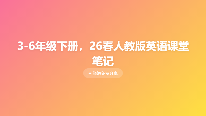 3-6年级下册,26春人教版英语课堂笔记 ├── 小学英语PEP 3年级下册 课堂笔记.pdf ├── 小学英语PEP 3年级下册 课堂笔记(25春最新版).pdf ├── 小学英语PEP 4年级下册 课堂笔记.pdf ├── 小学英语PEP 4年级下册 课堂笔记(26春最新版).pdf ├── 小学英语PEP 5年级下册 课堂笔记.pdf └── 小学英语PEP 6年级下册 课堂笔记.pdf
