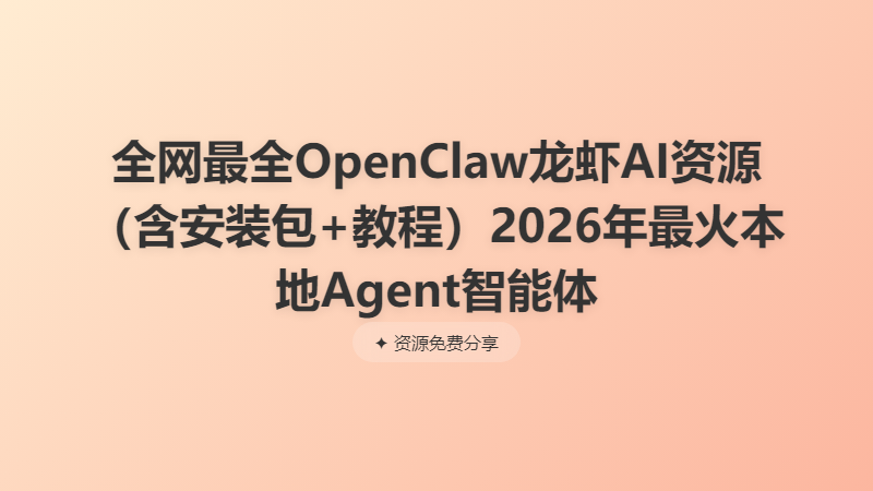 全网最全OpenClaw龙虾AI资源(含安装包+教程)2026年最火本地Agent智能体