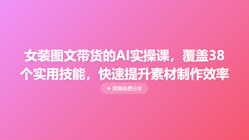 女装图文带货的AI实操课,覆盖38个实用技能,快速提升素材制作效率 └── 女装图文带货的AI实操课,覆盖38个实用技能,快速提升素材制作效率.zip