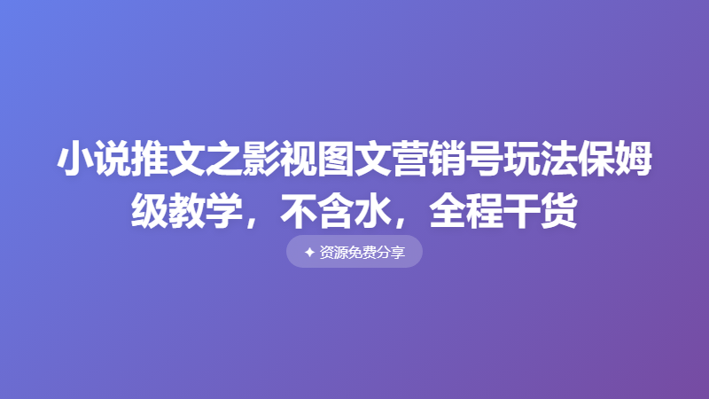 小说推文之影视图文营销号玩法保姆级教学,不含水,全程干货