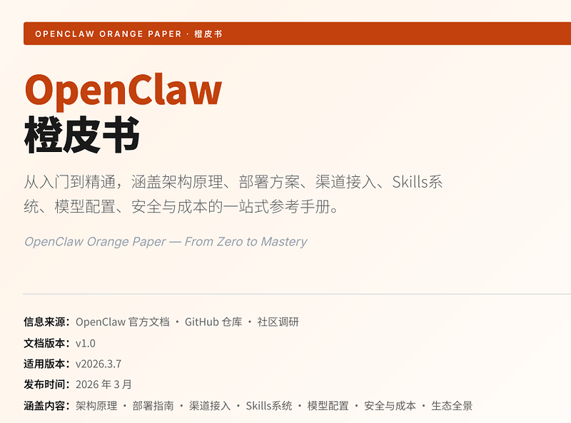 OpenClaw橙皮书 - 从入门到精通