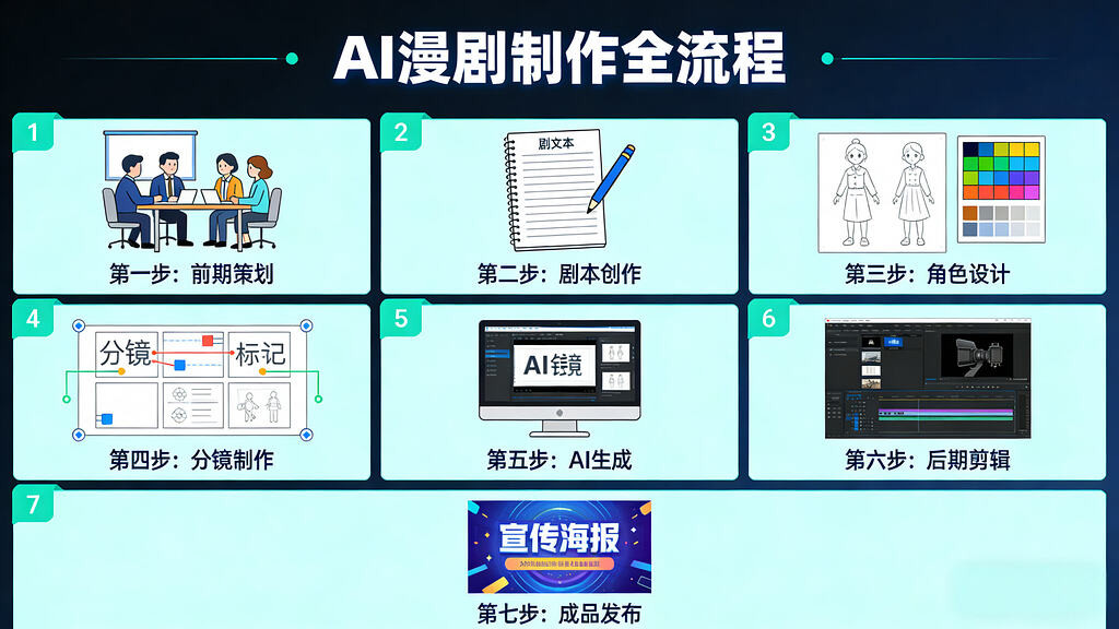 《AI漫剧制作全流程》手把手教学,从剧本构思、角色设计、分镜绘制到配音合成,全流程AI工具实战,零基础也能一口气完成首部漫剧作品。