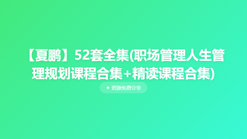 「【夏鹏】 52套全集(职场管理人生管理规划课程合集+精读课程合集)【587G】」 ├── 1-夏鹏·极简管理12讲 │ ├── 1--第1讲(1) 管理就是让下属明白什么是最重要的.mp4 │ ├── 1.jpg │ ├── 2--第1讲(2) 管理就是让下属明白什么是最重要的.mp4 │ ├── 2.jpg │ ├── 3--第1讲(3) 管理就是让下属明白什么是最重要的.mp4 │ ├── 4--第1讲(4) 管理就是让下属明白什么是最重要的.mp4 │ ├── 5--第2讲 6顶帽子的思想工具.mp4 │ ├── 6--第3讲 面对事实,解决问题.mp4 │ ├── 7--第4讲 通过事管人,通过人做事.mp4 │ ├── 8--第5讲 情景领导力模型.mp4 │ ├── 9--第6讲 让一线得到并可以使用资源.mp4 │ ├── 10--第7讲(1)人会成为他所期望的样子.mp4 │ ├── 11--第7讲(2) 人会成为他所期望的样子.mp4 │ ├── 12--第8讲 管理三阶段.mp4 │ └── 新用户手机端保存领取1TB&每日领取容量【图文指引】.jpg ├── 2.夏鹏·情绪管理课6讲 │ ├── 1--第一讲(1)中庸之道.mp4 │ ├── 2--第二讲(2)三体理论.mp4 │ ├── 3--第三讲(3)主动创造改变的条件.mp4 │ ├── 4--第四讲(4)打造情绪的重心.mp4 │ ├── 5--第五讲(5)与他人的协作与沟通.mp4 │ └── 6--夏老师情绪课复习直播回放.mp4 ├── 3.夏鹏·职场沟通12讲 │ ├── 1--第01讲 沟通的本质.mp4 │ ├── 2--第02讲 有效沟通原则一:坦诚.mp4 │ ├── 3--第03讲 有效沟通原则二:利他.mp4 │ ├── 4--第04讲 如何做好策划.mp4 │ ├── 5--第05讲 有效沟通原则三:清晰.mp4 │ ├── 6--第06讲 面对拒绝如何应对.mp4 │ ├── 7--第07讲 沟通中的情绪问题.mp4 │ ├── 8--第08讲 与领导沟通.mp4 │ ├── 9--第09讲 与下属沟通.mp4 │ ├── 10--第10讲 与平级沟通.mp4 │ ├── 11--第11讲 与客户沟通.mp4 │ └── 12--第12讲 【彩蛋】沟通高手的性格修炼.mp4 ├── 4.夏鹏·职场规划12讲 │ ├── 1--第01讲(上) 发现你的优势.mp4 │ ├── 2--第01讲(下) 发现你的优势.mp4 │ ├── 3--第02讲 试练的心法.mp4 │ ├── 4--第03讲(上) 匹配工作的路径.mp4 │ ├── 5--第03讲(下) 匹配工作的路径.mp4 │ ├── 6--第04讲(上) 优势强化.mp4 │ ├── 7--第04讲(中) 优势强化.mp4 │ ├── 8--第04讲(下) 优势强化.mp4 │ ├── 9--第05讲 优势转化为收益.mp4 │ ├── 10--第06讲 优势的迁移.mp4 │ ├── 11--第07讲 周期与行业.mp4 │ ├── 12--第08讲 行业与公司.mp4 │ ├── 13--第09讲 公司与岗位.mp4 │ ├── 14--第10讲 职业与城市.mp4 │ ├── 15--第11讲 学历与职业.mp4 │ └── 16--第12讲 第二曲线.mp4 ├── 5.夏鹏·副业思维12讲 │ ├── 1--第一讲(1) 财富的本质.mp4 │ ├── 2--第一讲(2) 财富的本质.mp4 │ ├── 3--第二讲(1) 生意是算出来的.mp4 │ ├── 4--第二讲(2) 生意是算出来的.mp4 │ ├── 5--第三讲(1) 生意是跑出来的.mp4 ... 省略 1311 行 ... │ ├── 《强势》第五节.mp4 │ ├── 《强势》第一节.mp4 │ ├── 《强势》课间答疑.mp4 │ └── 《强势》课间练习.mp4 └── 《道德经实修营》 ├── 001《道德经实修营》第一章.mp4 ├── 002《道德经实修营》第二、三章.mp4 ├── 004《道德经实修营》第四章.mp4 ├── 005《道德经实修营》第五章.mp4 ├── 006《道德经实修营》第六章.mp4 ├── 007《道德经实修营》第七章.mp4 ├── 008《道德经实修营》第八章(上).mp4 ├── 008《道德经实修营》第八章(下).mp4 ├── 009《道德经实修营》第九章.mp4 ├── 010《道德经实修营》第十章(上).mp4 ├── 010《道德经实修营》第十章(下).mp4 ├── 011《道德经实修营》第十一章.mp4 ├── 012《道德经实修营》第十二章.mp4 ├── 013《道德经实修营》第十三章.mp4 ├── 014《道德经实修营》第十四章.mp4 ├── 015《道德经实修营》第十五章.mp4 ├── 016《道德经实修营》第十六章.mp4 ├── 017《道德经实修营》第十七章.mp4 ├── 018《道德经实修营》第十八章.mp4 ├── 019《道德经实修营》第十九章.mp4 ├── 020《道德经实修营》第二十章.mp4 ├── 021《道德经实修营》第二十一章.mp4 ├── 022《道德经实修营》第二十二章.mp4 ├── 023《道德经实修营》第二十三章.mp4 ├── 024《道德经实修营》第二十四章.mp4 ├── 025《道德经实修营》第二十五章.mp4 ├── 026《道德经实修营》第二十六章.mp4 ├── 027《道德经实修营》第二十七章.mp4 ├── 028《道德经实修营》第二十八章.mp4 ├── 028《道德经实修营》第二十八章(下).mp4 ├── 029《道德经实修营》第二十九章.mp4 ├── 030《道德经实修营》第三十章.mp4 ├── 031《道德经实修营》第三十一章.mp4 ├── 032《道德经实修营》第三十二章.mp4 ├── 033《道德经实修营》第三十三章.mp4 ├── 034《道德经实修营》第三十四章.mp4 ├── 035《道德经实修营》第三十五章.mp4 ├── 036《道德经实修营》第三十六章.mp4 ├── 037《道德经实修营》第三十七章.mp4 ├── 038《道德经实修营》第三十八章.mp4 ├── 039《道德经实修营》第三十九章.mp4 ├── 040《道德经实修营》第四十章.mp4 ├── 041《道德经实修营》第四十一章.mp4 ├── 042《道德经实修营》第四十二章.mp4 ├── 043《道德经实修营》第四十三章.mp4 ├── 044《道德经实修营》第